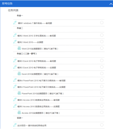 点开形考任务里面则有作业和实训,按照要求去完成就行。