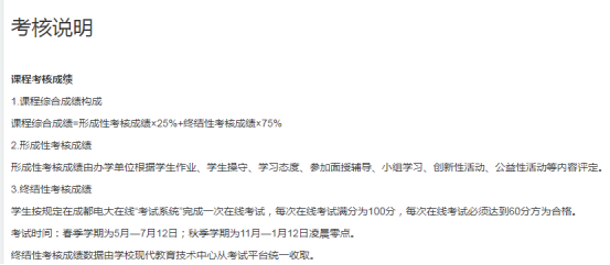 此说明清楚的告诉我们需要完成网上的形考和实训即可得到该门课程的综合成绩,综合成绩60分以上即可及格。