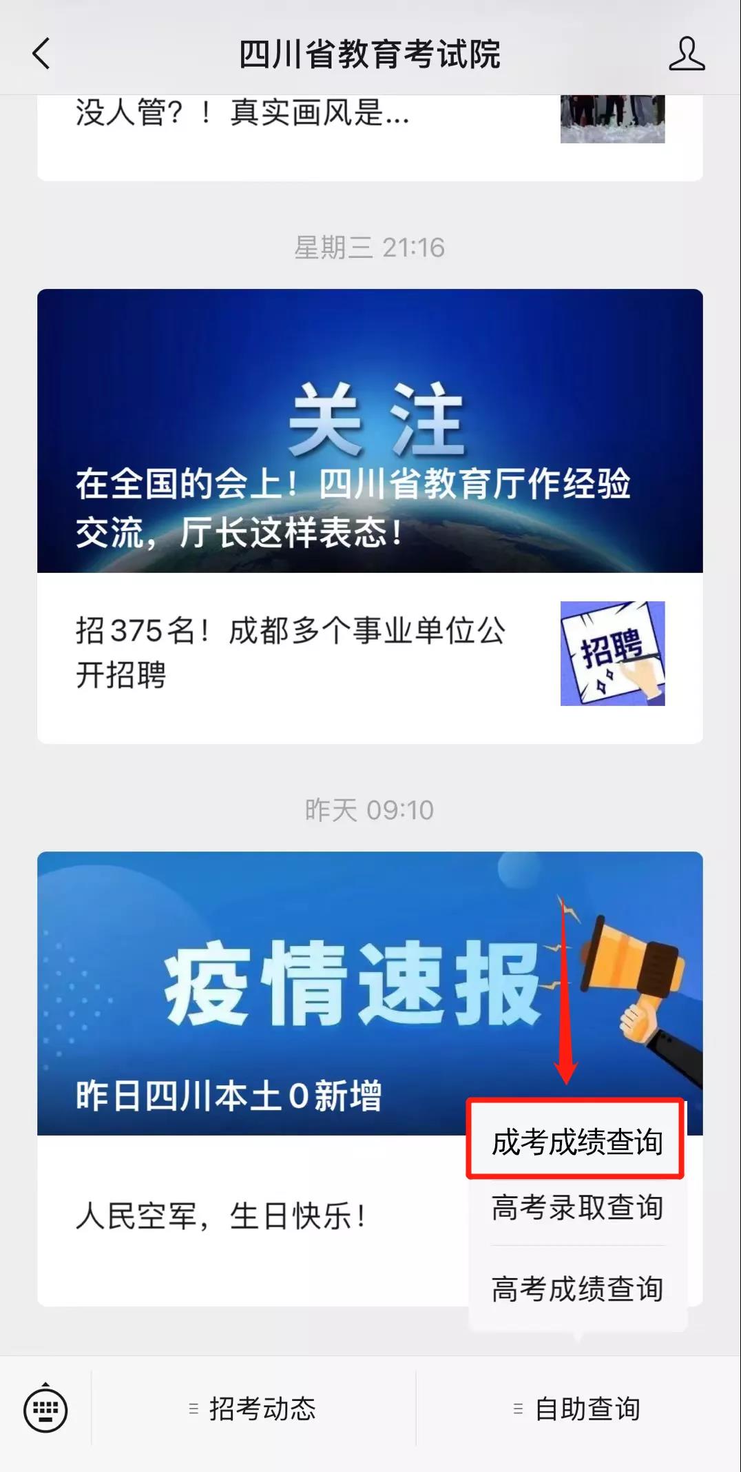 2.通过四川省教育考试院官方微信公众号(ID:scsjyksy)查询。