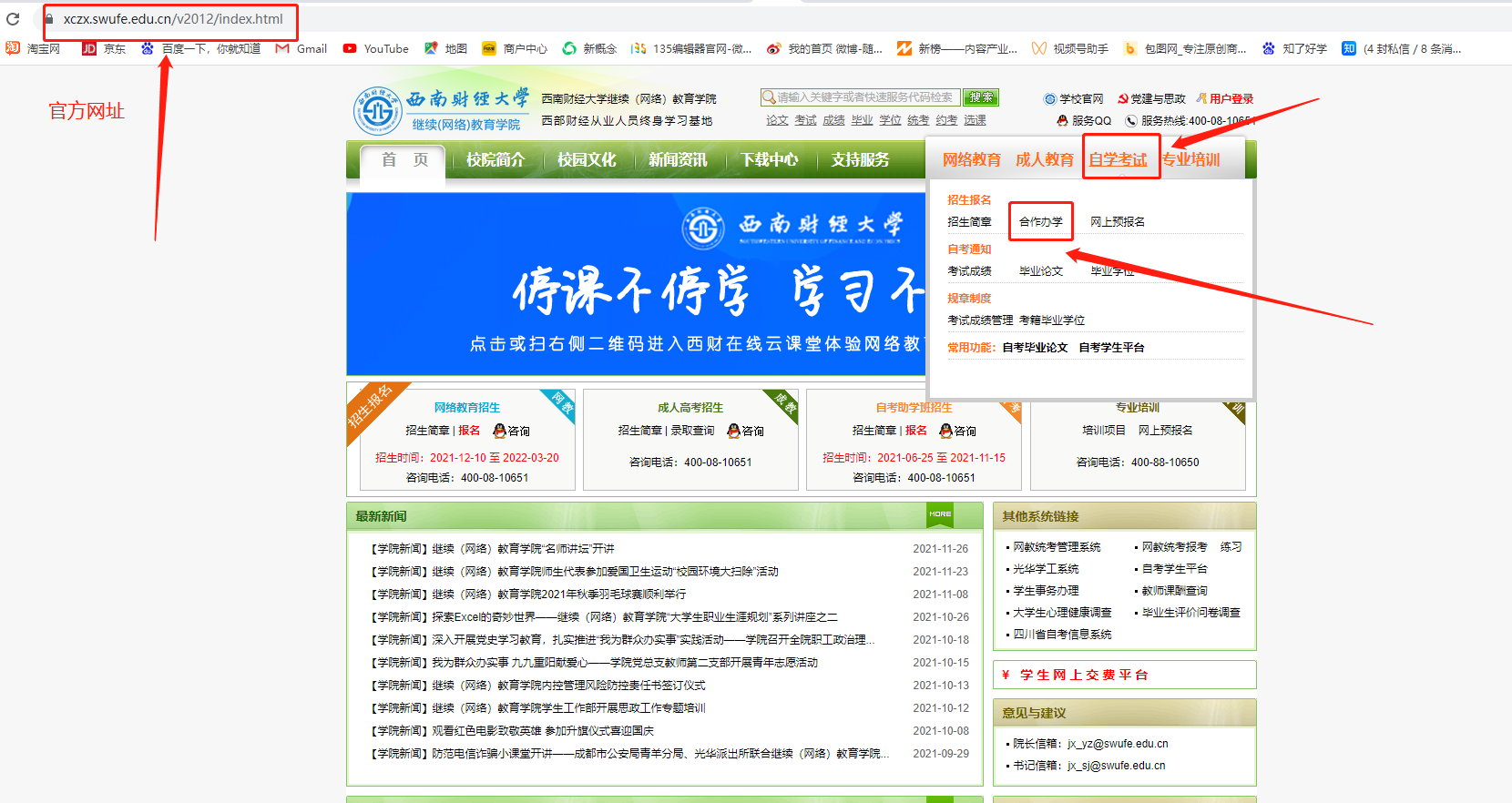 xingainian首先,所有高校的成人高等教育都有自己的继续教育官方网站,所有考试信息都会在官网上公布,所有联合办学的校外助学点也都会展示在官网的公布栏,大家根据自己的所在地区去寻找相对应的助学点这种方式是非常靠谱的,以下是小编给大家的详细解答~