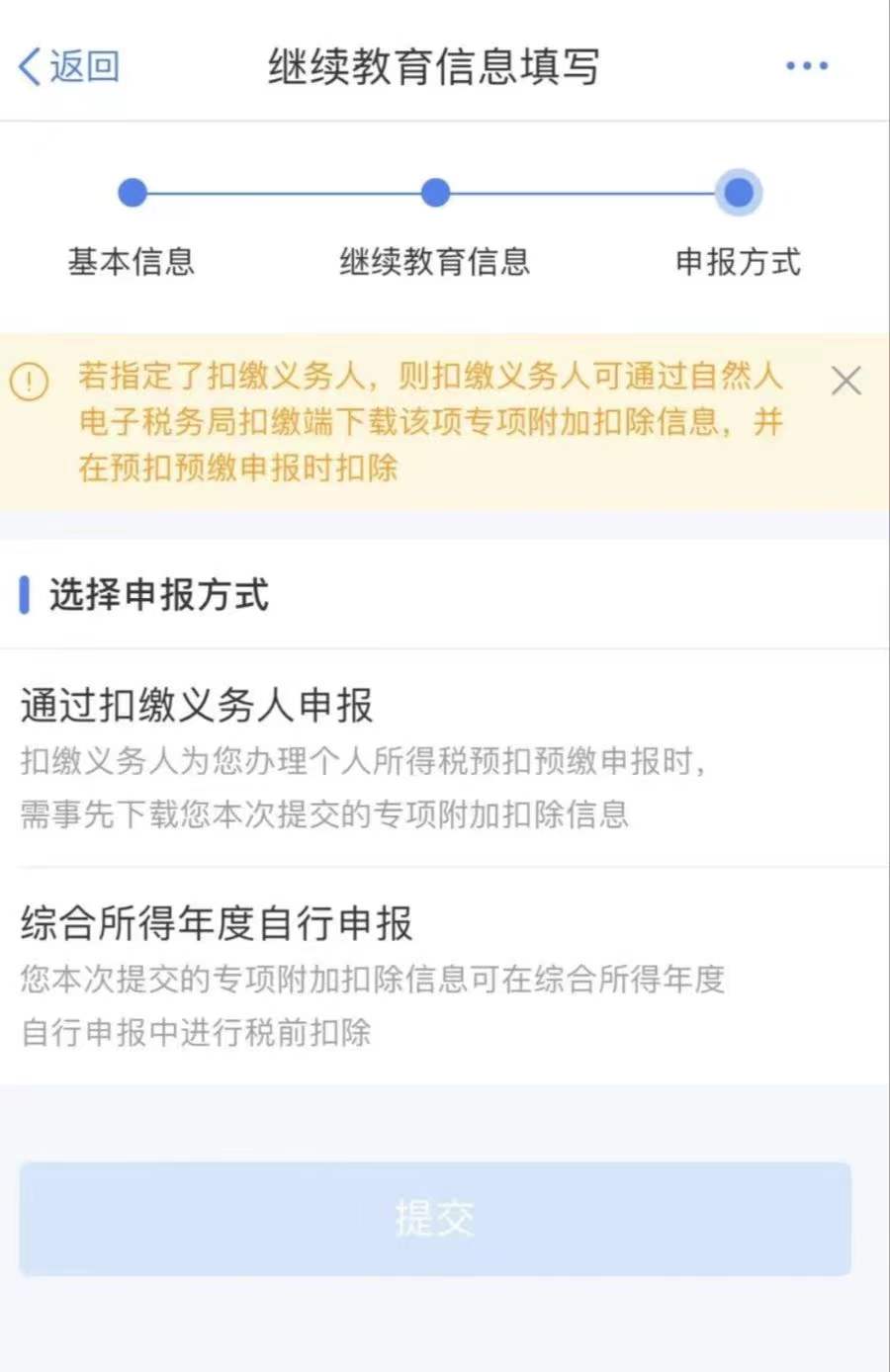 6、选择“申报方式”,点击“提交”即可。