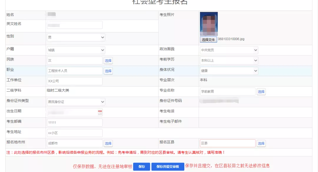 注意:某些考区可能会因注册考生过多,无法继续注册,考生可以选择其他县(市、区)进行注册报名。注册成功并取得准考证号的考生可在全省范围内进行课程报考,不受注册地限制。