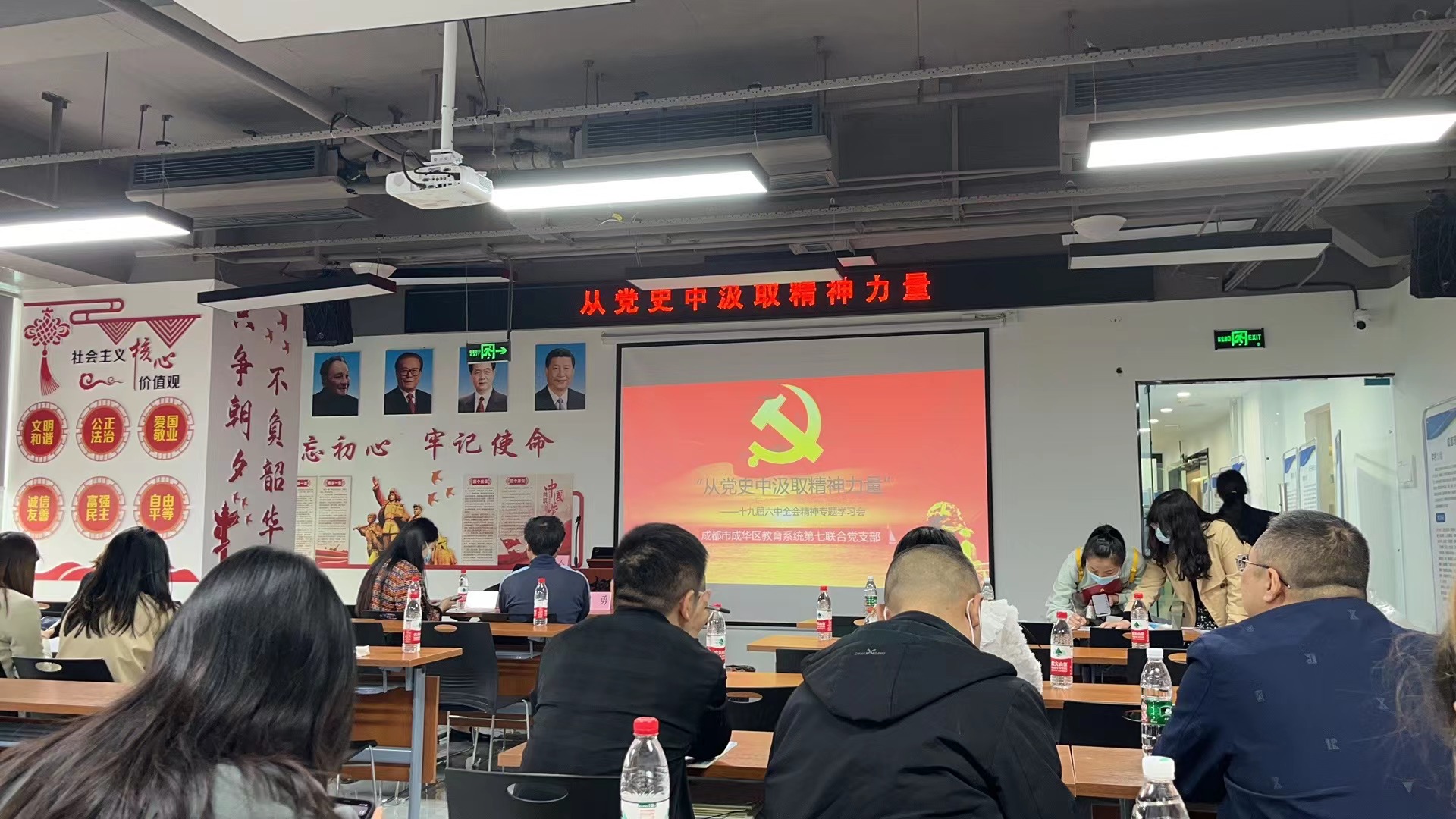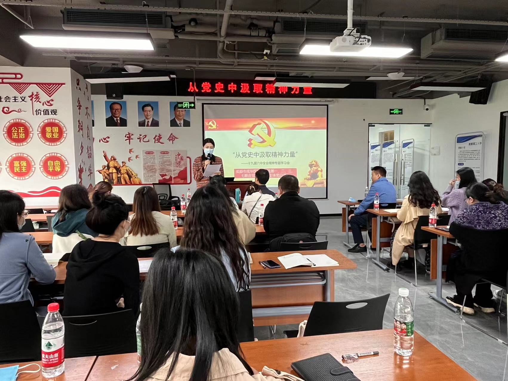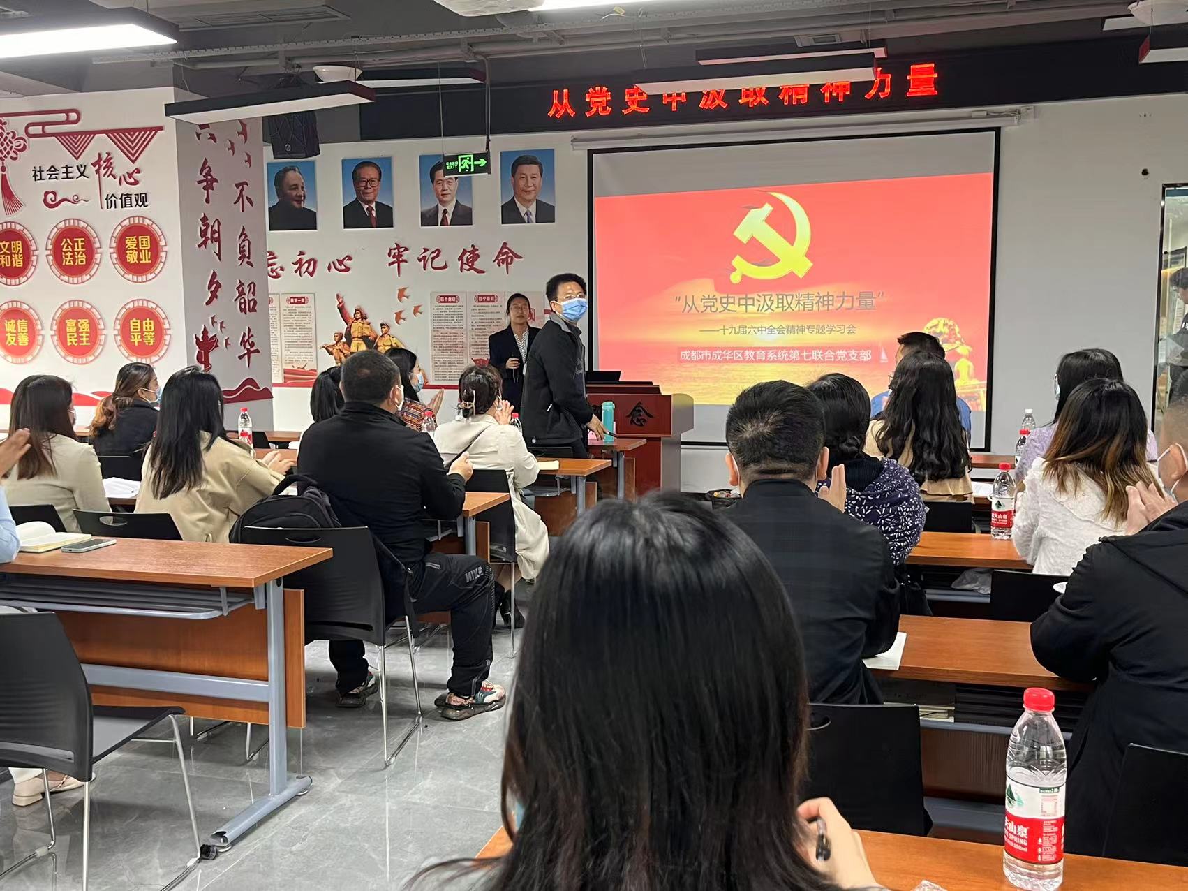 3月28日上午,成都市成华区教育系统第七联合党支部召开会议,专题学习党的十九届六中全会精神。会议由党员李莉主持,在党支部书记杨厚康老师的带领下,同孙玮,月勇等30名支部党员及入党积极分子参加了会议。