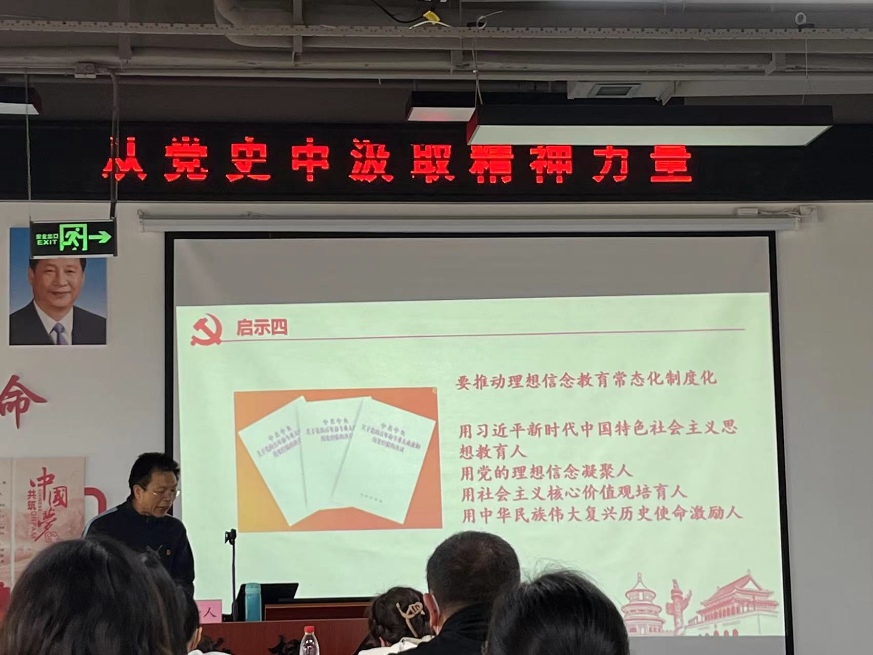 随后,由月勇老师做十九届六中全会精神学习会指导分析,通过党史学习了解了习近平同志做知青、1973年恢复文化考试、邓小平座谈会:下决心恢复高考、以及对文化大革命的思考,深入了了解了至1927年以来以周恩来、陈毅,毛泽东,邓小平等为首的老一辈无产阶级革命家开展革命斗争的真实事迹。通过纵观古今的分析,党员们读懂了使命担当,厚植了为民情怀,从党史中汲取了强大的精神力量,进一步坚定了听党话、跟党走的决心。更加坚定了党员们坚持“方向决定道路,道路决定命运“以经济建设为中心,坚持四项基本原则,坚持改革开放,以及“一个中心,两个基本点”基本路线的核心内容。