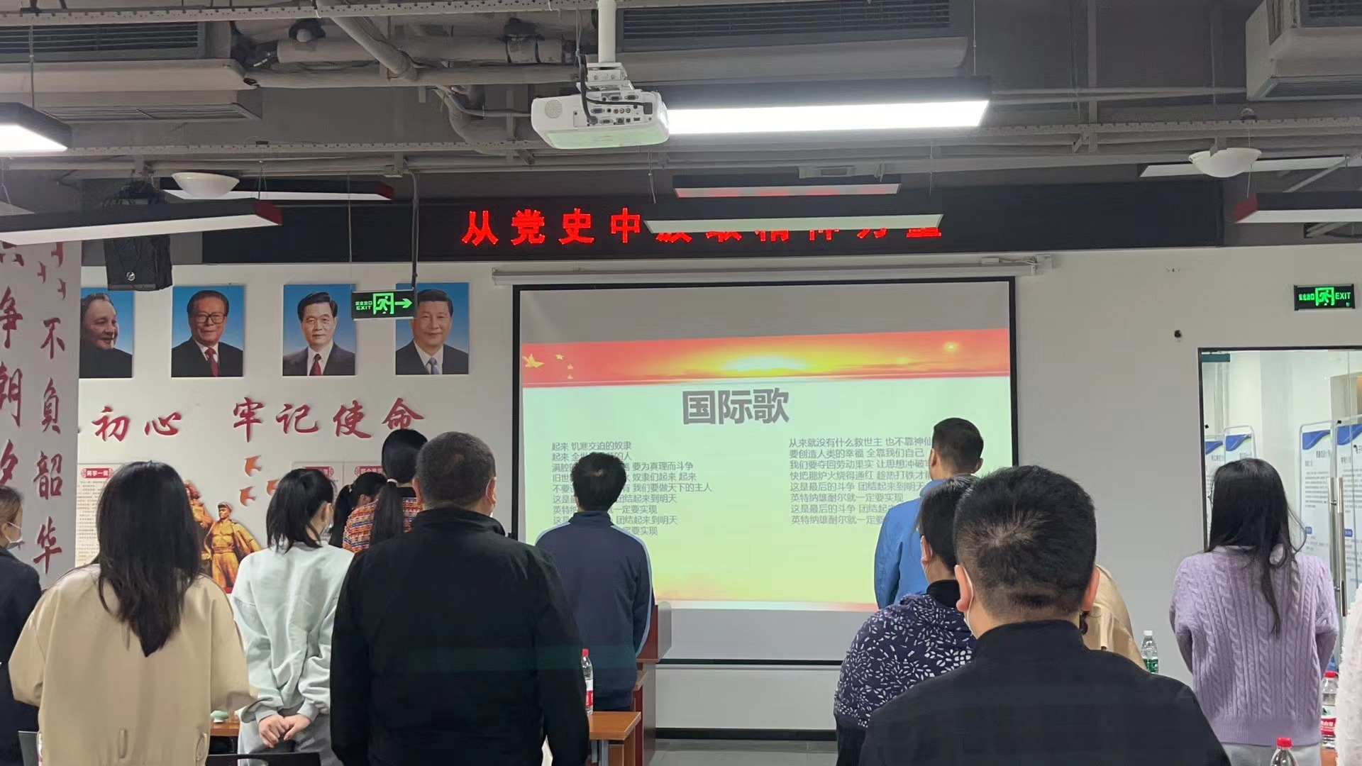 最后,主讲人致感谢辞,参会人员分享了学习心得及收获,与会党员斗志昂扬地集体合唱了《国际歌》,本次专题学习在党员们激昂豪迈的歌声中徐徐落下帷幕。机关党支部全体党员始终秉持高质量服务师生、高水平助力学院发展的理念,坚持党建引领,不断从党史学习中汲取奋进的力量,促进党务、业务双提升,本次会议圆满结束。