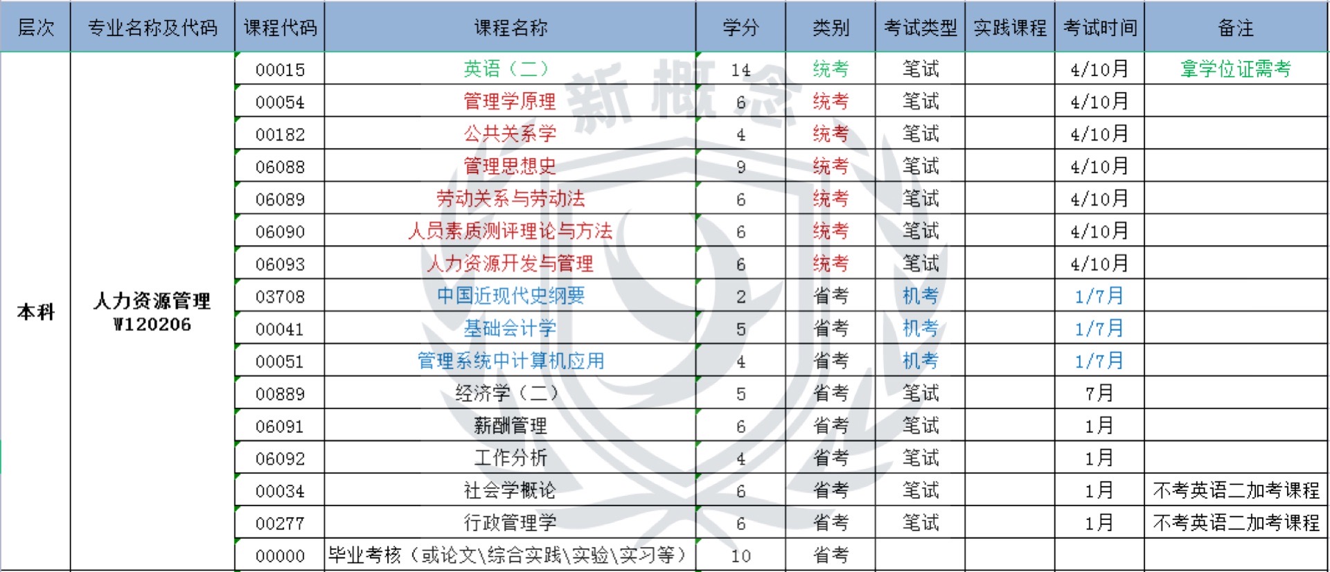 人力资源管理——自考本科科目表