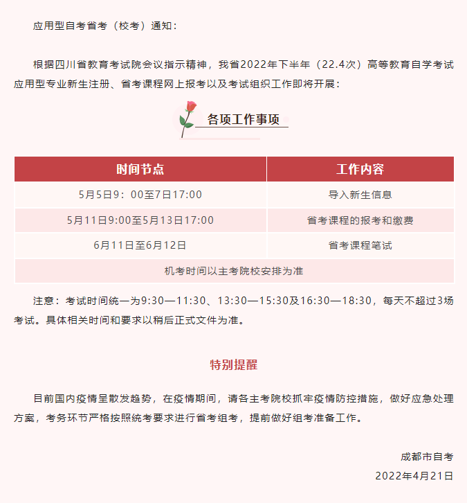 四川自考办|224次省考(校考)考试通知发布