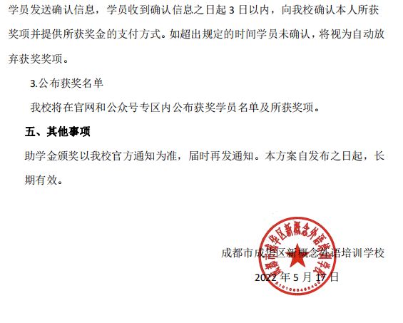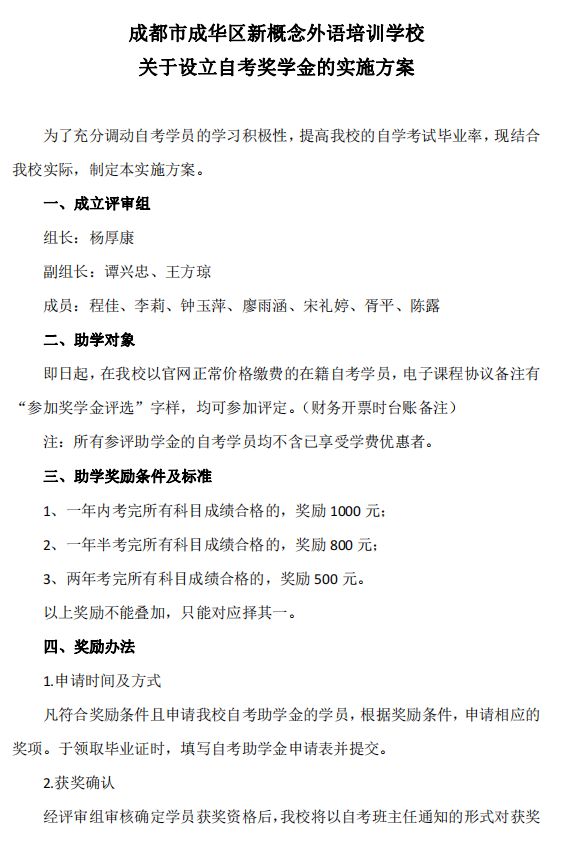 成都市成华区新概念外语培训学校关于设立自考奖学金的实施方案