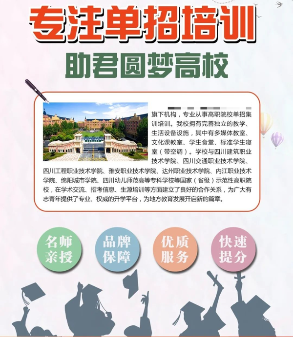 4、考试分值不一样:单招考试中的科目各测试院校的设定分值不一样,具体以各测试学院招生简章为准。