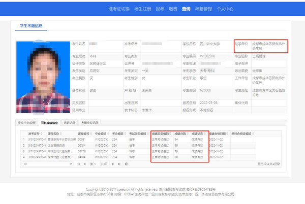 询查网页:四川省教育考试院