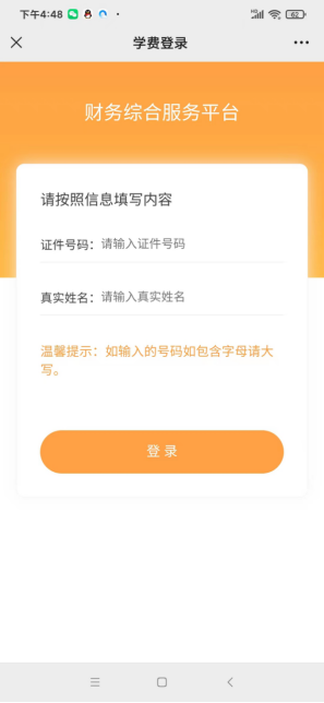 3.输入学生身份证号码和姓名即可登录