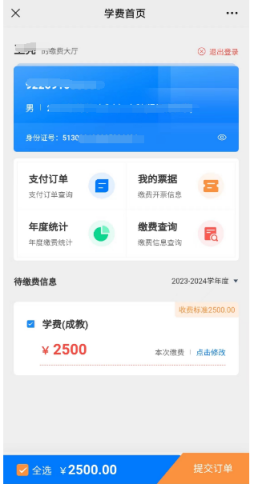 3.点提交订单,完成缴费