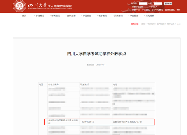 进入四川大学成人继续教育学院官网——