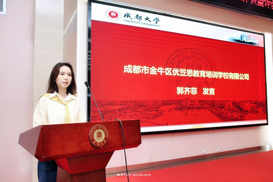 成都市金牛区优笠思教育培训学校有限公司郭齐菲代表受表彰的“先进集体”作交流发言,她对我校自考工作给予充分的肯定和诚挚的谢意。随后,她从党建引领、制度建设、办学质量、创新服务、诚信办学等方面做了交流和分享,并表示今后将会坚持规范办学,认真按照国家、省、市教育部门的要求开展教育教学和学生支持服务工作,不断提升管理服务质量。