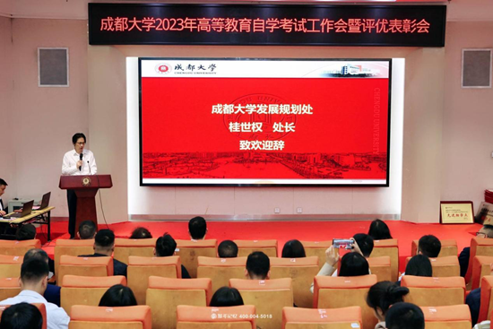 xingainian为全面贯彻落实习近平总书记新时代中国特色社会主义思想和党的二十大精神,办好人民满意的继续教育,进一步促进我校高等学历继续教育健康、规范、有序发展,2023年4月21日,成都大学2023年高等教育自学考试工作会暨评优表彰会在成都大学博物馆学术报告厅隆重召开。成都大学发展规划处处长桂世权、继续教育学院院长魏青出席会议,各校内外助学点分管学历继续教育领导及工作人员、发展规划处分管领导及工作人员、继续教育学院全体教职工参加会议。会议由继续教育学院党支部书记黄晓红主持。
